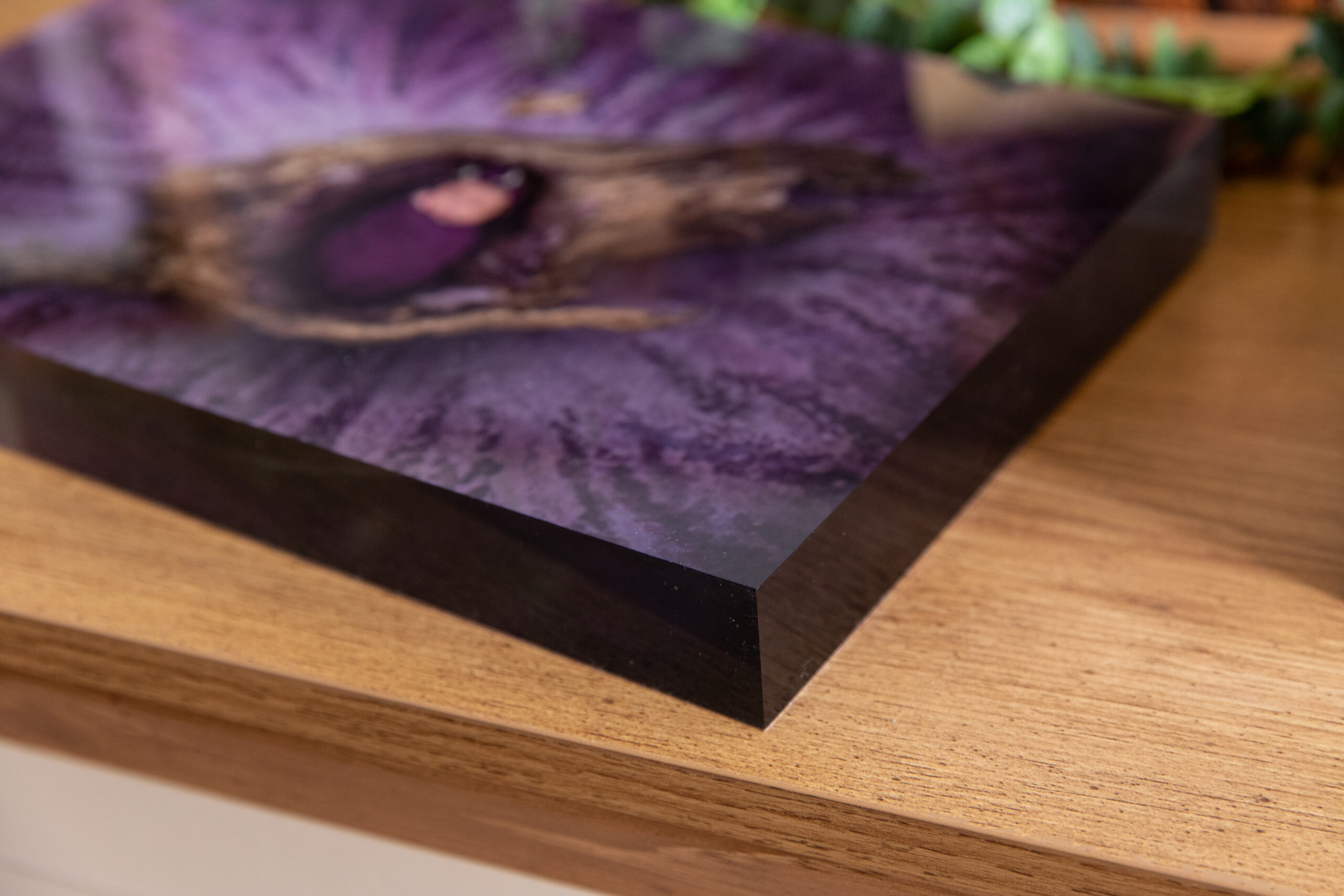 A freestanding acrylic block, that makes your image pop and gives them a floating three-dimensional effect.