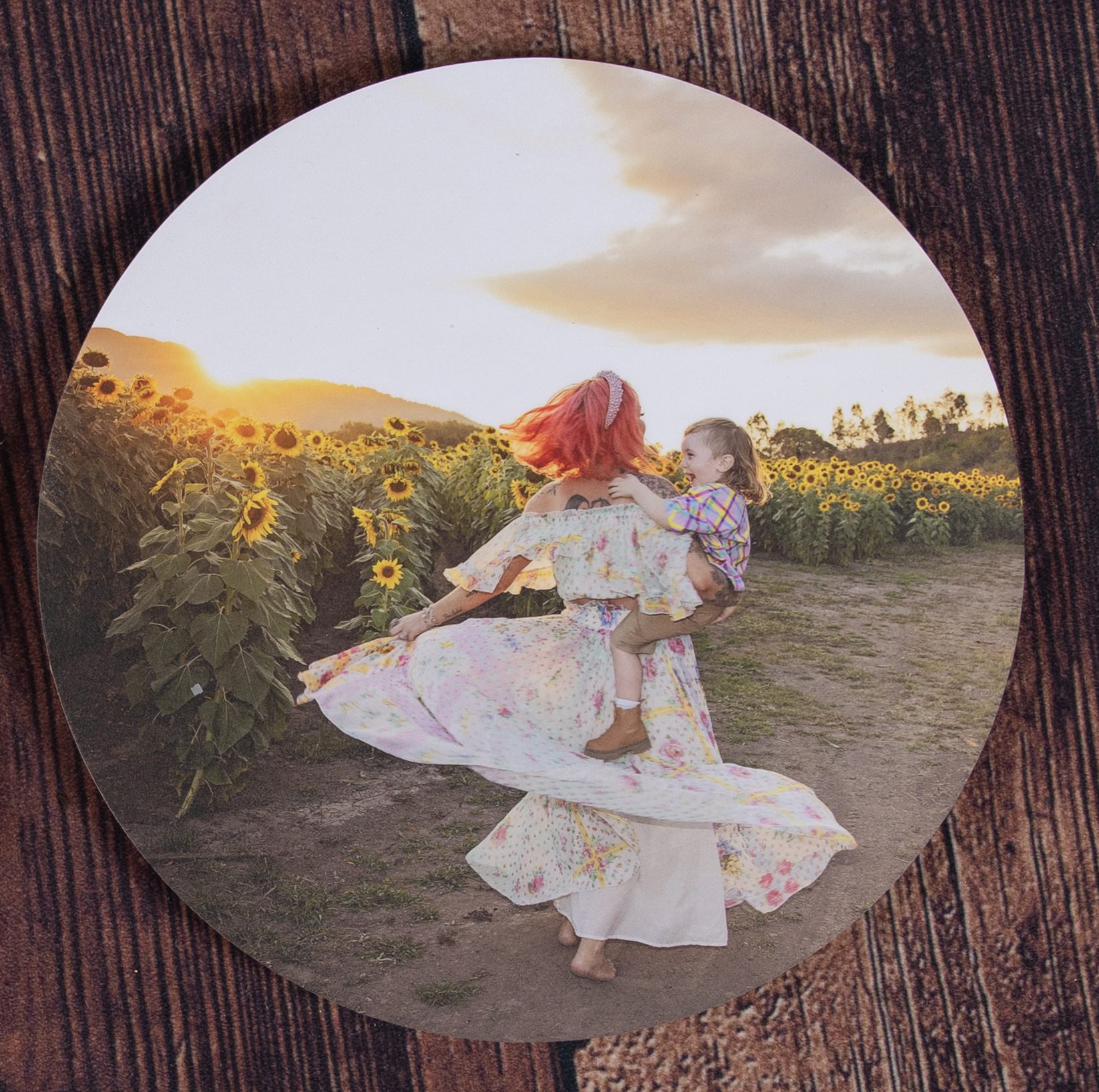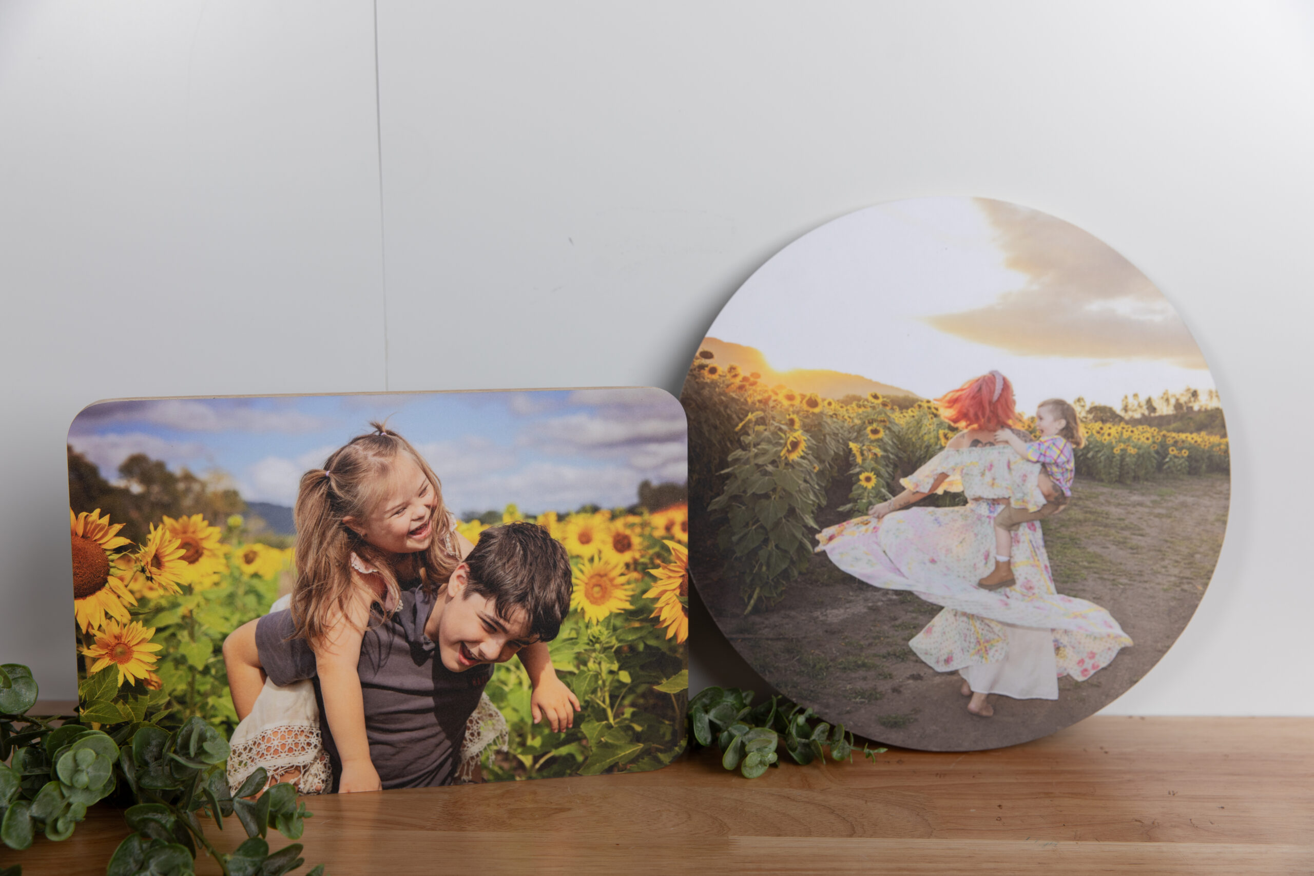 Beautiful stylish photographic prints mounted on a circular timber panel